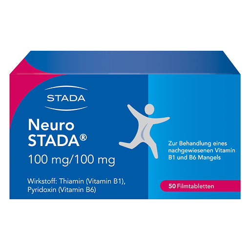 Der individuelle Vitamin-B-Bedarf hängt unter anderem vom Ernährungsverhalten, aber auch von der jeweiligen körperlichen Beanspruchung und der Stoffwechselaktivität des einzelnen Menschen ab. Ein Mangel an Vitamin B1 und Vitamin B6 kann zu Mangelerscheinungen führen. Neuro STADA® kann das Nervengewebe bei Vitamin-B-Mangel durch ausreichende Versorgung von Vitamin B1 und B6 stärken.